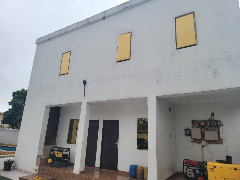 All rooms ensuite, with big parlour downstairs, mini parlour upstairs, with swimming pool,enough space on the compound, selling with furniture land is 60 by 120. last year house.
