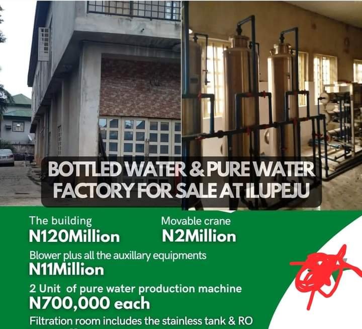BOTTLED & PURE WATER FACTORY IN LAGOS FOR SALE