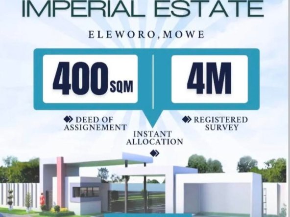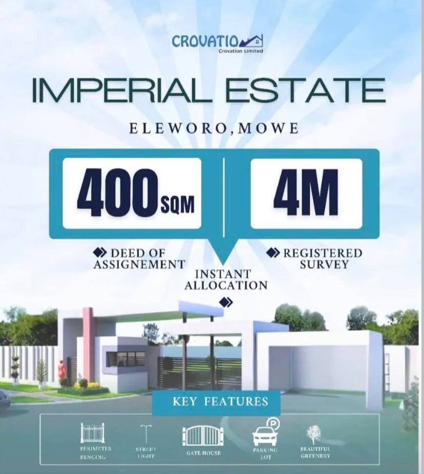 Imperial Estate is strategically positions 10 mins from the Lagos Ibadan Express way and 7 mins from Trinity College and Ofada Market. It be 1 mins from the LUTH Nurses Cooperative Property. The road leading to the property is well paved all the way from the Express leading to the Estate. It is a very good property that has a record of at least 40% yearly appreciation in value since 2022 owing to the cell constructed roads from the Express way down to the site thereby offering great investment opportunities
