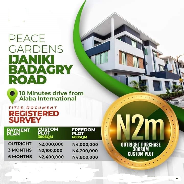 LAND & PLOTS AT IJANIKIN ROAD BADAGRY LAGOS,BUY LANDS WITH 5 MINUTES DRIVE TO ALABA INTERNATIONAL MARKET FOR 2M FOR 3000SQM, WILE 600SQM IS 4M